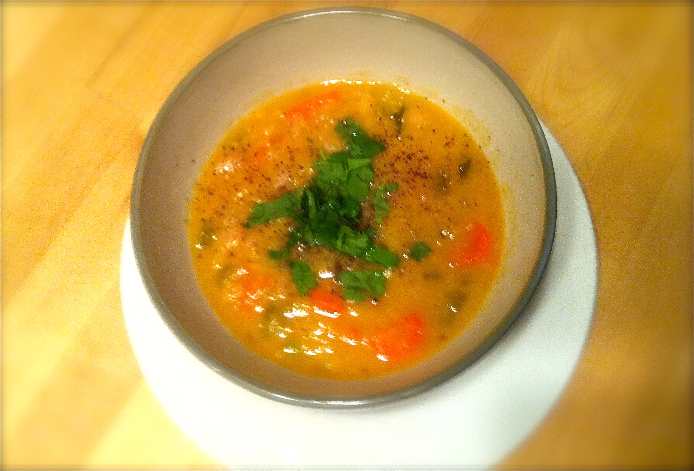 Just before you serve your soup, add the diced avocado, tomatoes and onion to each individual bowl – as much as you like. Garnish with cilantro and serve!
